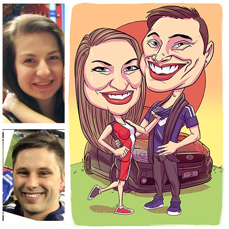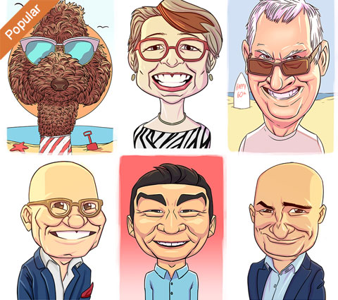 - Full colour head and shoulders caricature including simple background