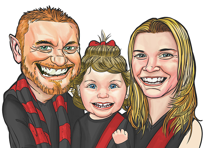 Have you ever seen a family of Essendon fans as photogenic as this? I recently had the pleasure of working on this caricature, which was created as a gift for the Father of this footy loving family. Melissa sent me a good selection of photos that I was able to work from, in order to achieve the accurate likenesses my work demands.